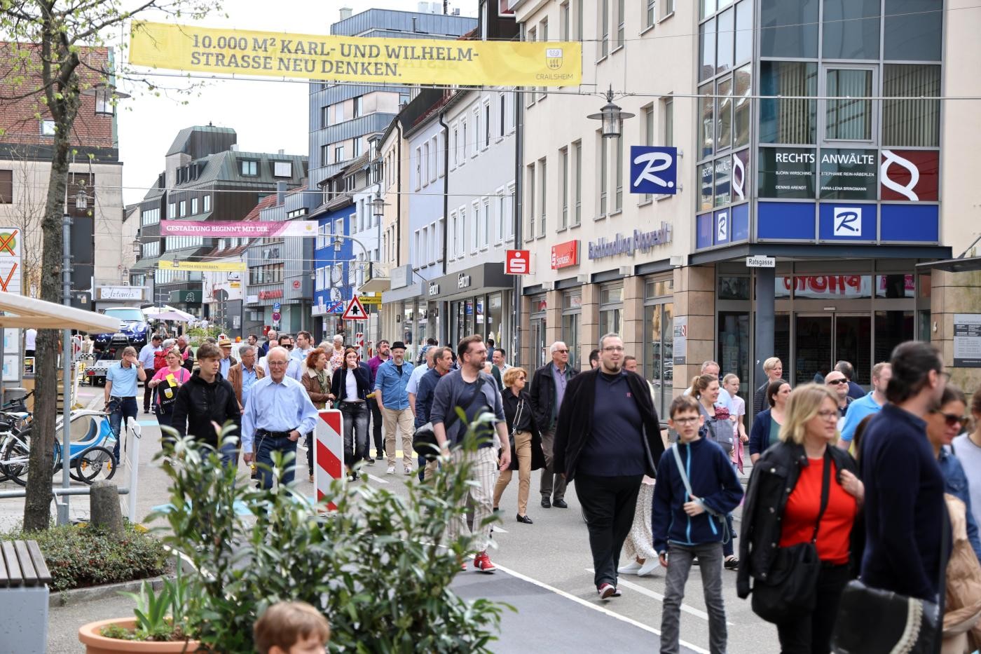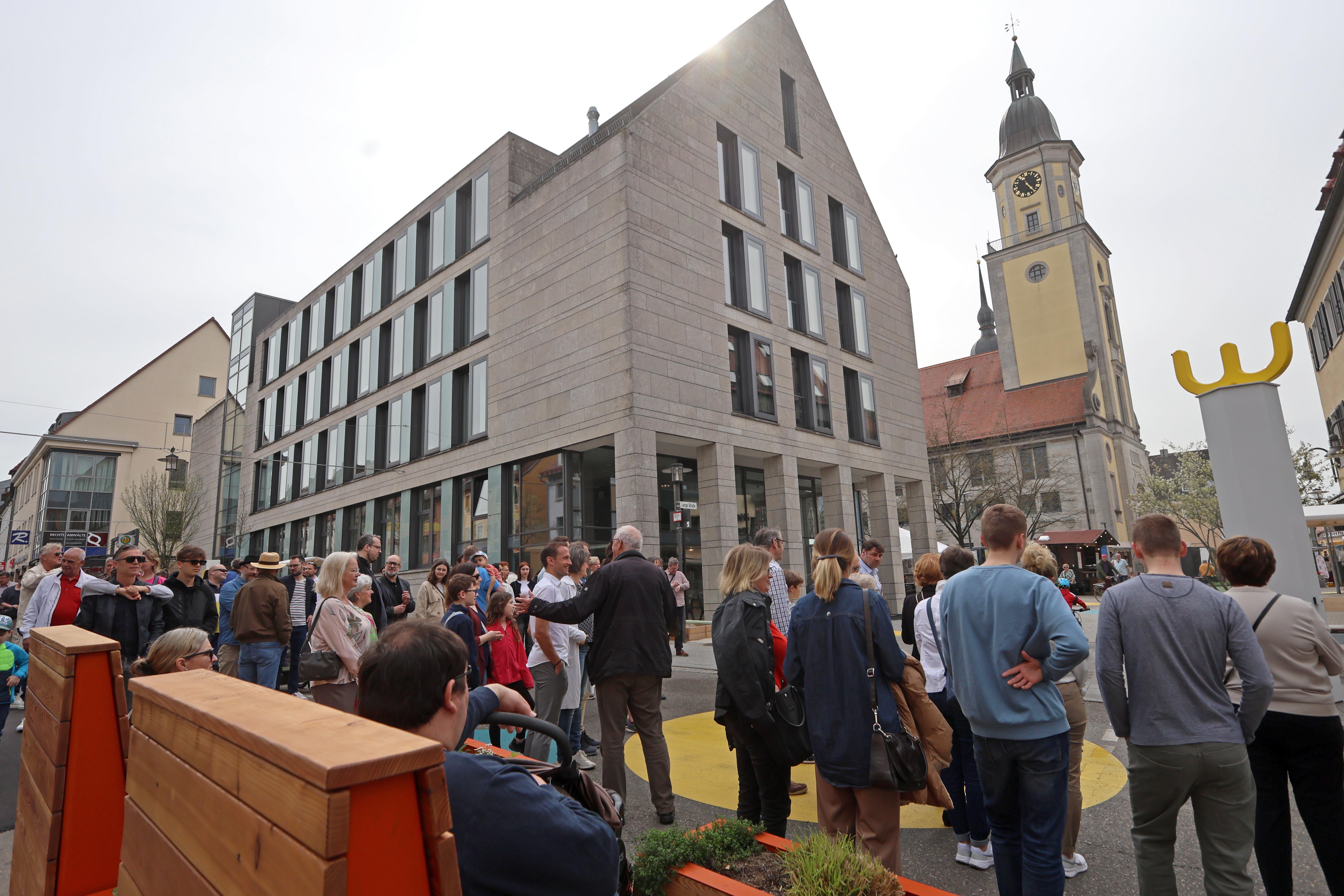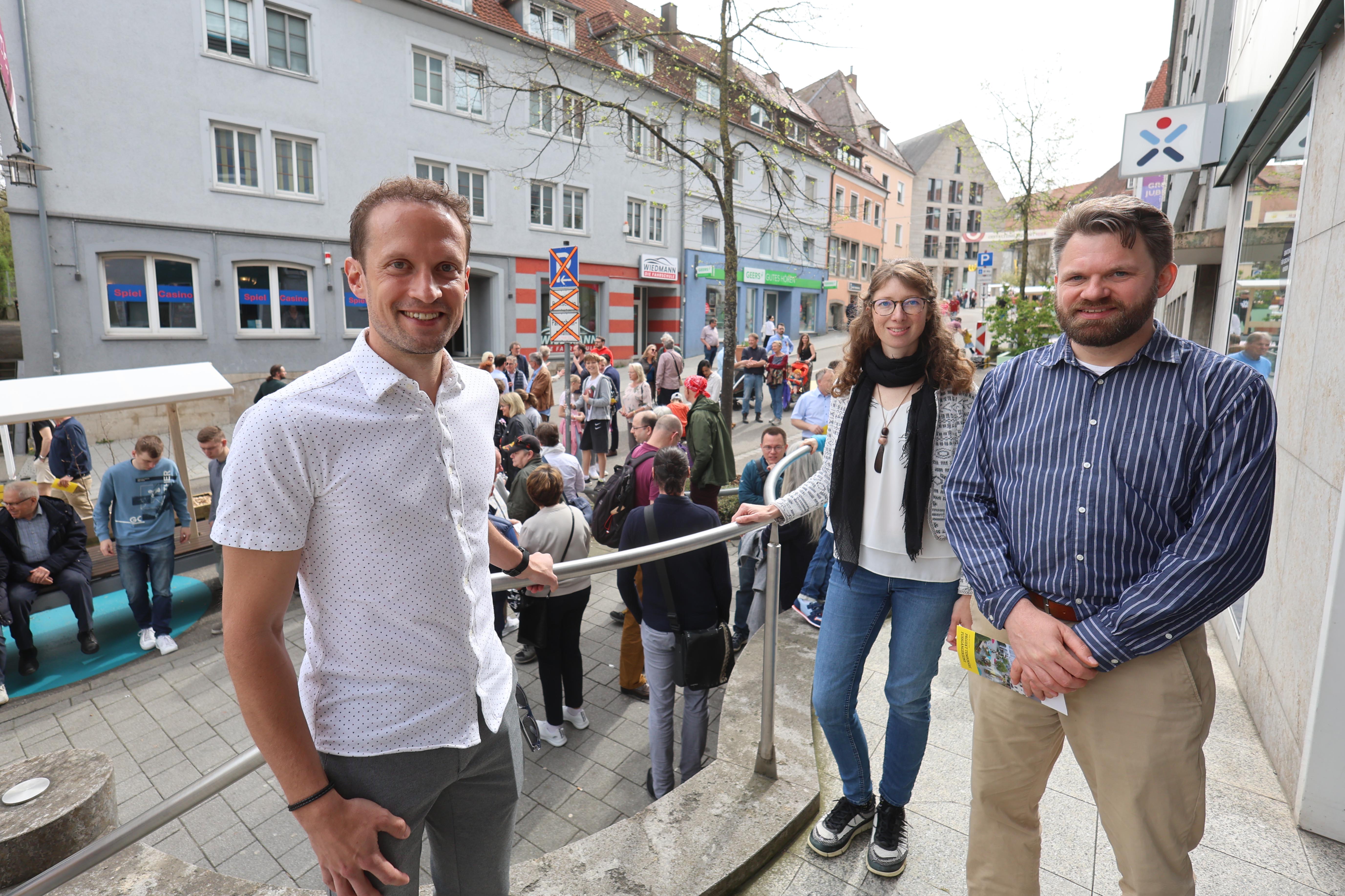Rund 100 Gäste waren bei der Eröffnung der temporären Fußgängerzone mit dabei und genossen bei frühsommerlichen Wetter einen von den Projektplanern geführten Spaziergang. Oberbürgermeister Dr. Christoph Grimmer freute sich auf die kommenden Wochen und appellierte, sich auf das Projekt einzulassen.