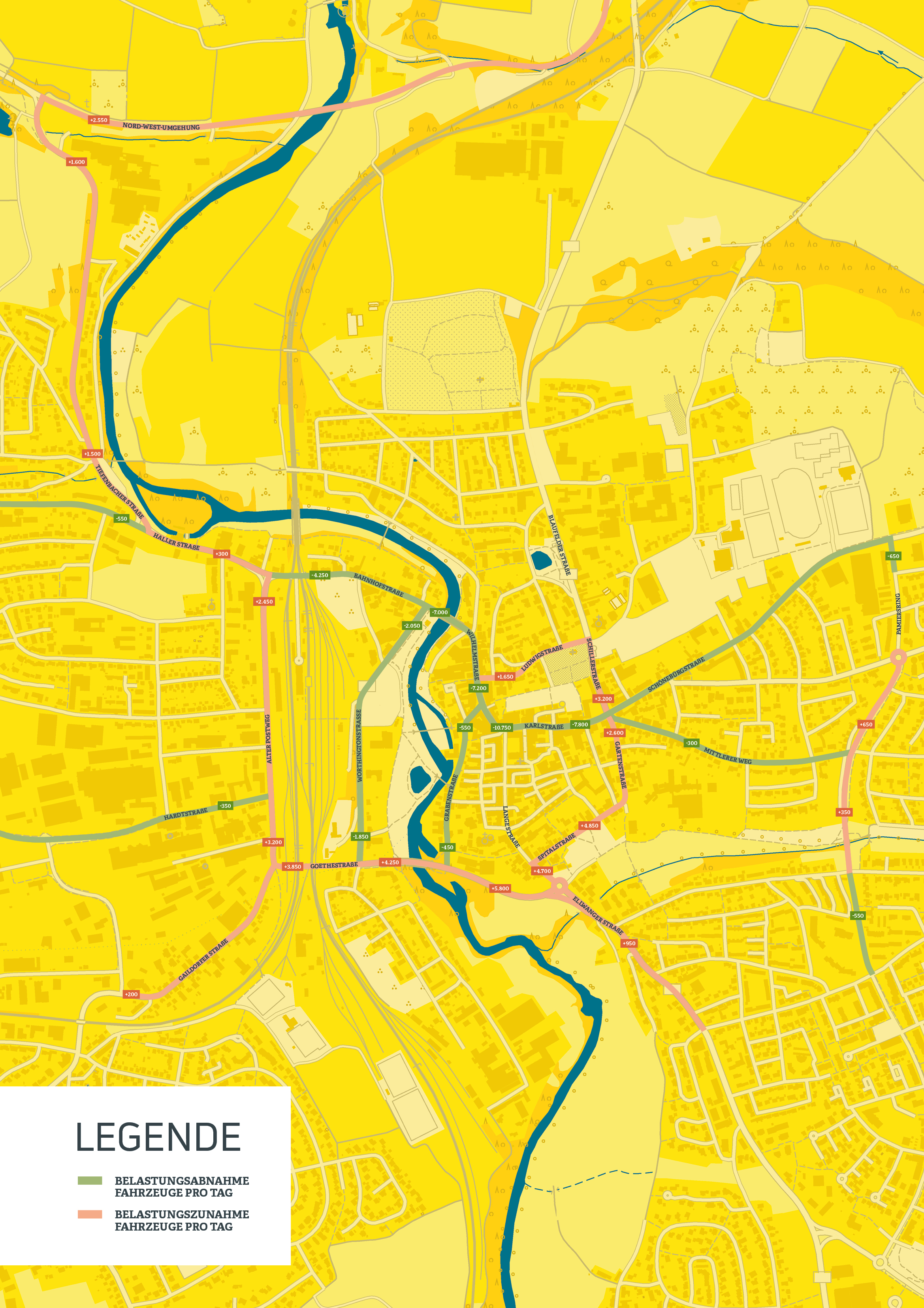 Angesichts der großen städtebaulichen Potenziale erfolgte eine vertiefte Analyse der Verkehrssituation in der Crailsheimer Innenstadt: Ein Verkehrsmodell der Stadt Crailsheim wurde für den Verkehrsentwicklungsplan erstellt und fußt damit auf Basisdaten aus dem Jahr 2012. Diese Daten wurden hinsichtlich der Netzdichte durch Verkehrsmengen-Erhebungen und videobasierte Zählungen verfeinert und aktualisiert. Die Ergebnisse flossen anschließend in das Modell ein. Dabei wurden verschiedene Parameter angepasst, alle relevanten Strecken, Knotenpunkte und Anbindungen berücksichtigt und im Anschluss mehrere Varianten berechnet. Zentrales Element aller Varianten ist die Sperrung der Karl- und Wilhelmstraße für den motorisierten Individualverkehr.
